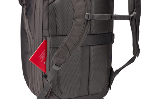 Mặt lưng của Balo Thule có một dải đai ngang. Khi đi du lịch, nhiều hành lý, bạn chỉ việc luồn dải đai này qua tay cầm của một chiếc vali kéo lớn. Balo sẽ yên vị vững chắc trên vali, giải phóng hoàn toàn sức nặng cho đôi vai và cột sống của bạn.