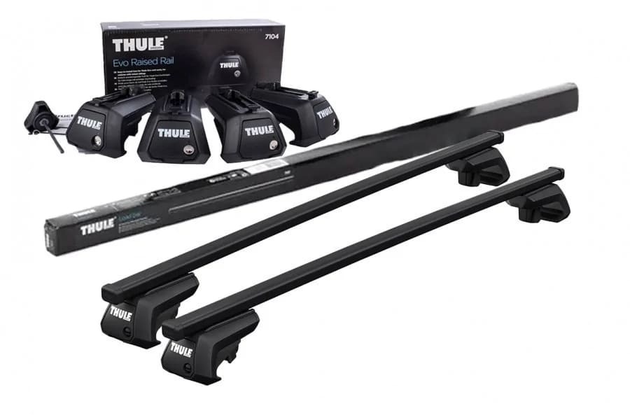 Sản phẩm gồm 2 thanh ngang SquareBar Evo và 4 chân đế Evo tương thích với nóc xe hơi của bạn, chính hãng Thule của Thụy Điển.