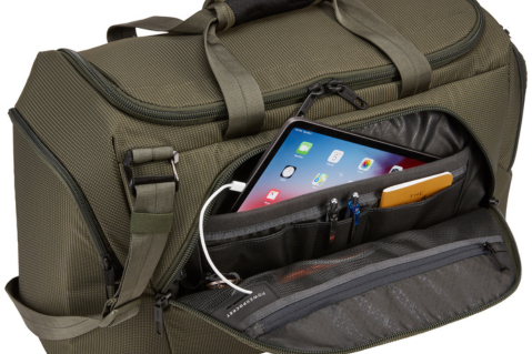 Tích hợp ngay ở mặt trước túi trống cao cấp của Thule là một hệ sinh thái lưu trữ phụ kiện. Hệ thống PowerPocket giúp bạn đi dây cáp sạc gọn gàng từ cục sạc dự phòng ra trực tiếp điện thoại, cho phép bạn sạc pin an toàn ngay khi đang di chuyển mà không bị vướng víu.
